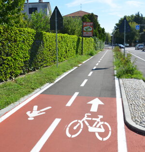 Riqualificazione della banchina stradale della SP 139 dir con realizzazione dell’area fermata bus e di un percorso ciclopedonale a tratti in sede propria e tratti in corsia con ampliamento della rampa di superamento dell’autostrada A7.